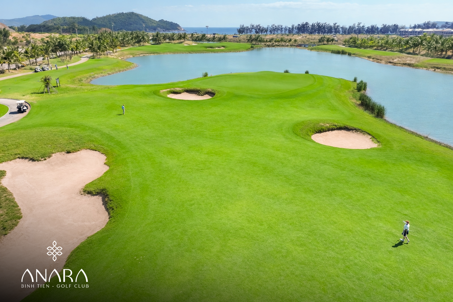 This short 366y/355m, drivable par 4 will again force the golfer to make a decision on how aggressive they want to play. Fairway bunkers left and right put a high value on club selection and accuracy. With the green set diagonal out onto the lake this is not a grip it and rip it tee shot. Hole location will again be a factor on club selection off the tee as a full shot in will be easier to control. Collection areas around the green allow some forgiveness to the missed approach.